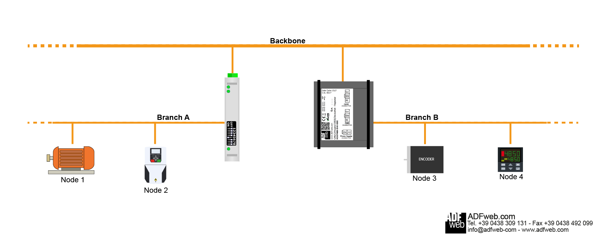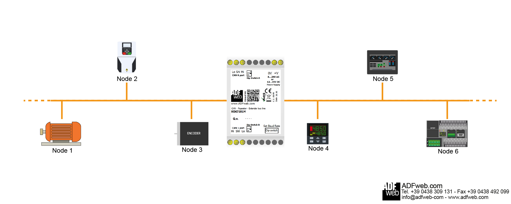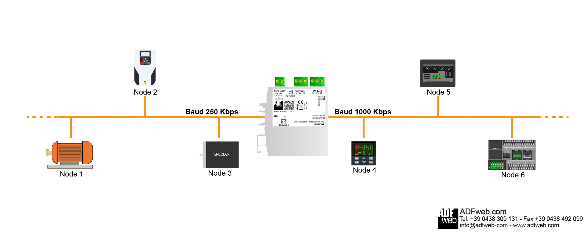 Series Optic Fibres CANopen Repeater