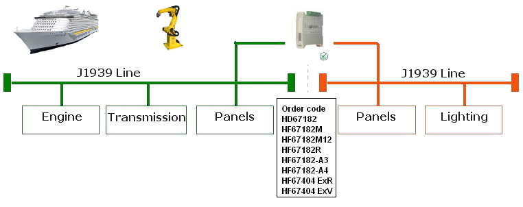 J1939 and NMEA 2000/Optic Fibres - Repeater - Extender bus line |